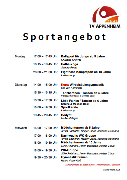 Sportangebot_Seite1_MRZ_2026 Posted on 15. März 2026 by TV Appenheim e.V. Leave a comment Previous Next Return to Kalender