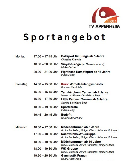 Sportangebot_Seite1_NOV_25-2 Posted on 10. November 2025 by TV Appenheim e.V. Leave a comment Previous Next Return to Kalender