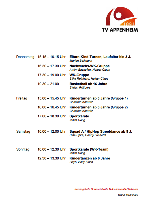 Sportangebot_Seite2_MRZ_2026 Posted on 15. März 2026 by TV Appenheim e.V. Leave a comment Previous Next Return to Kalender